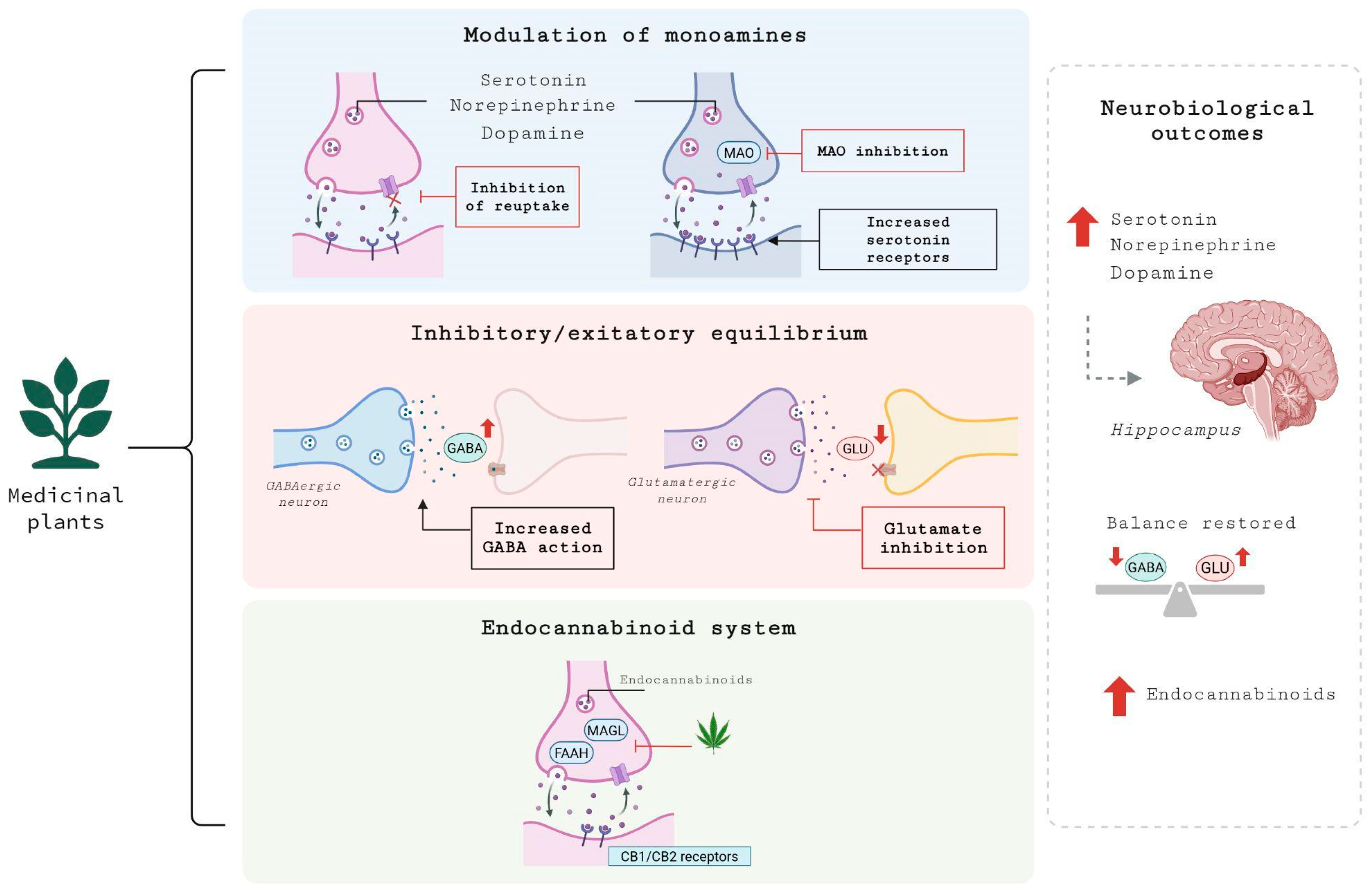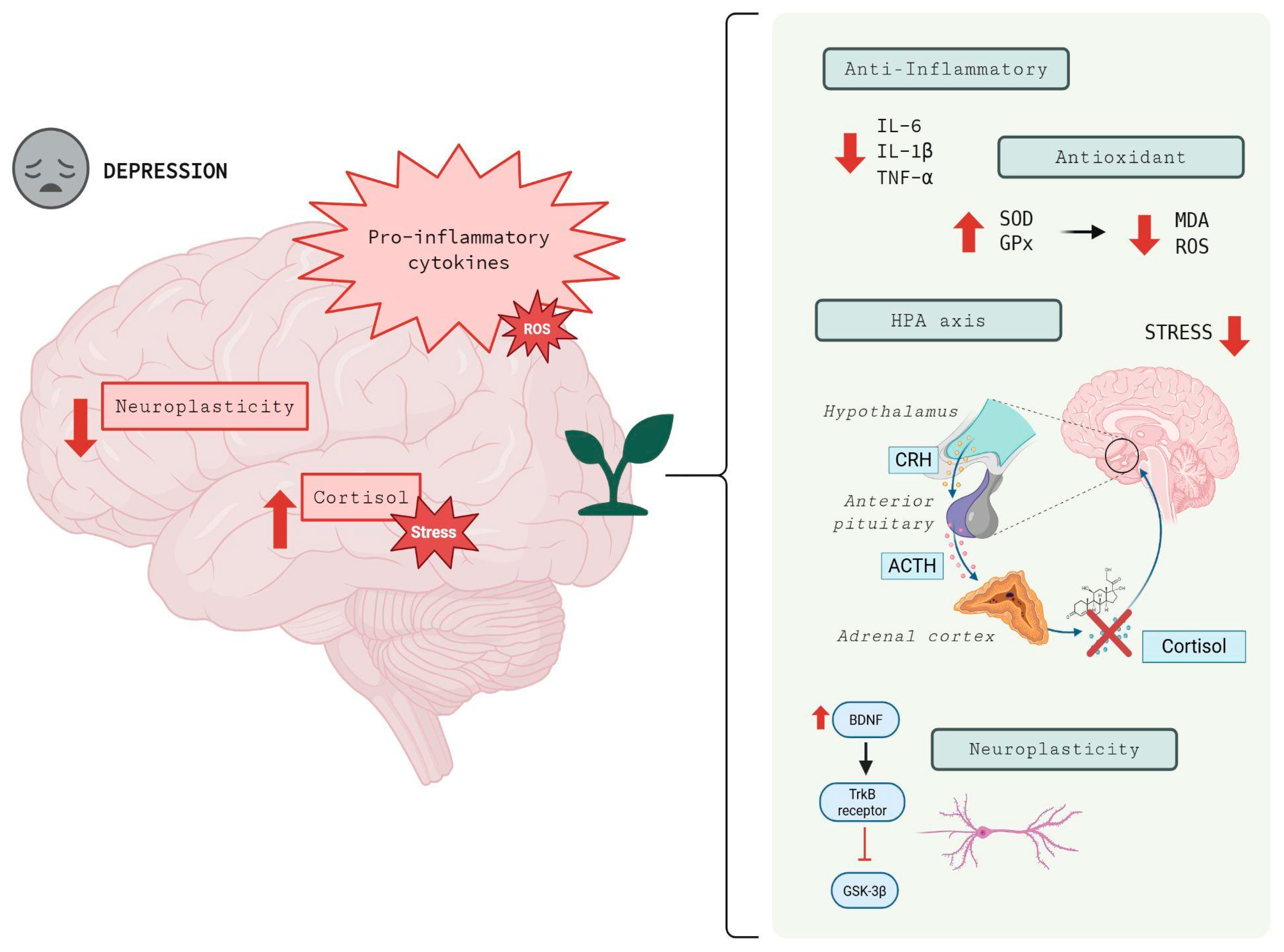 - Medicinal plants modulate neurotransmitters, neuroplasticity, and the HPA axis to treat MDD.