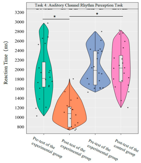 This demonstrates that a 10-week dancesport intervention can effectively enhance college students’ own rhythmic perception performance in medium-difficulty tasks, as shown by significant within-group improvement (Figure 3).