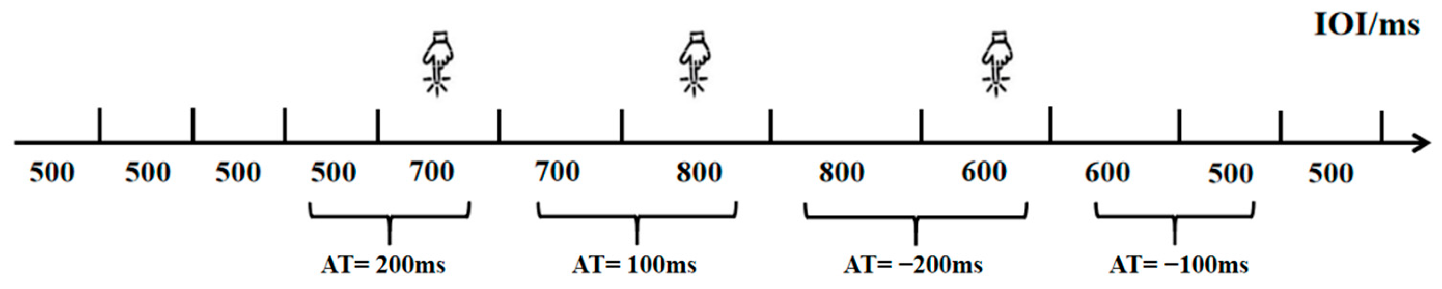 - Pan, L.; Qian, X. Rhythm perception and interactions between different sensory channels. Adv. Psychol. Sci. 2015, 23, 1910. [Google Scholar] [CrossRef]