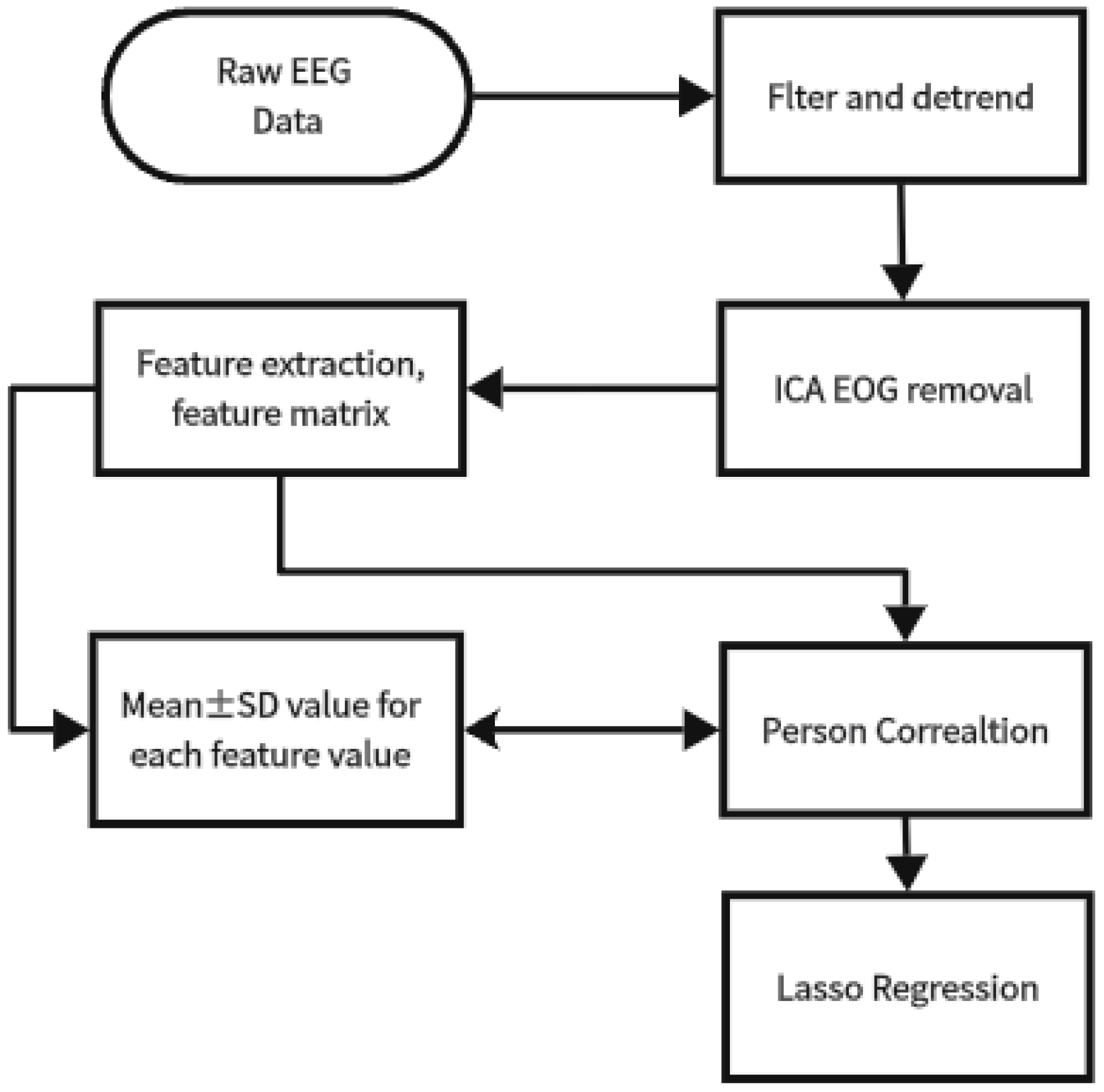 - Independent component analysis (ICA) was performed using the ‘pop_runica’ function (extended Infomax algorithm) to remove ocular artifacts (blinks, saccades, etc.);