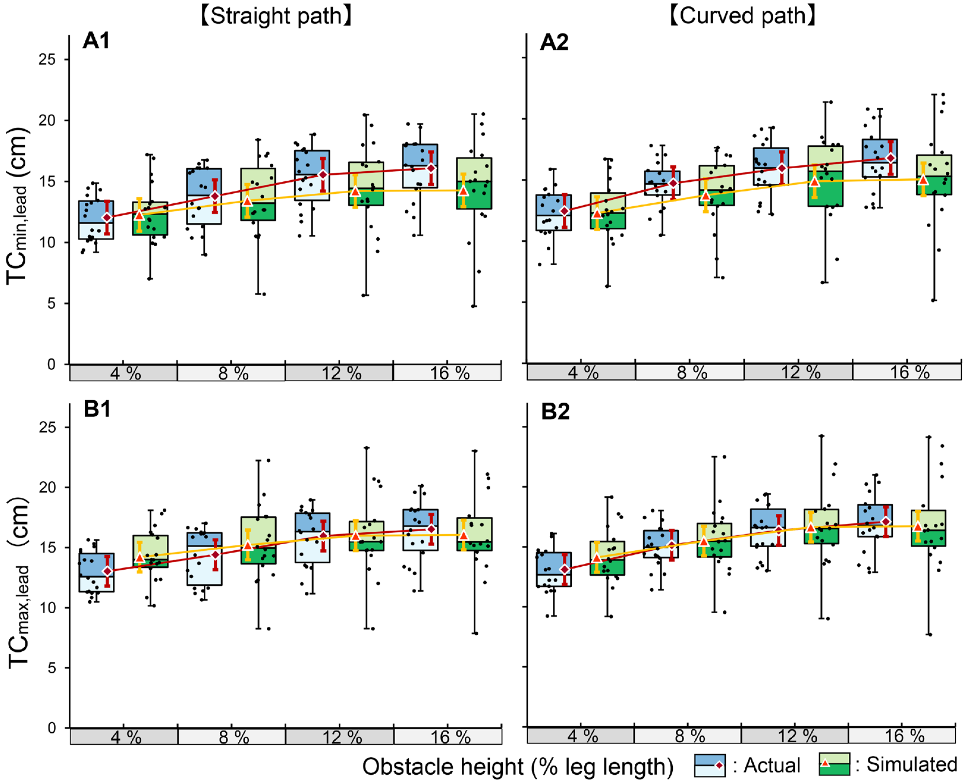 min,lead was systematically reduced and exhibited a saturation effect at higher obstacle levels (12–16%). The maintenance of TC