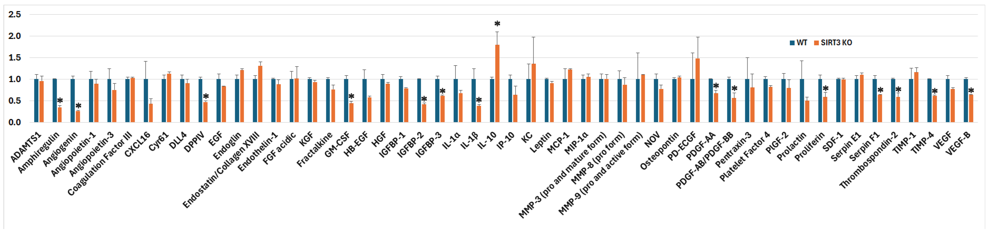 3.2. SIRT3 Deletion Alters the Expression of Angiogenic Proteins in Mouse Brain Tissue