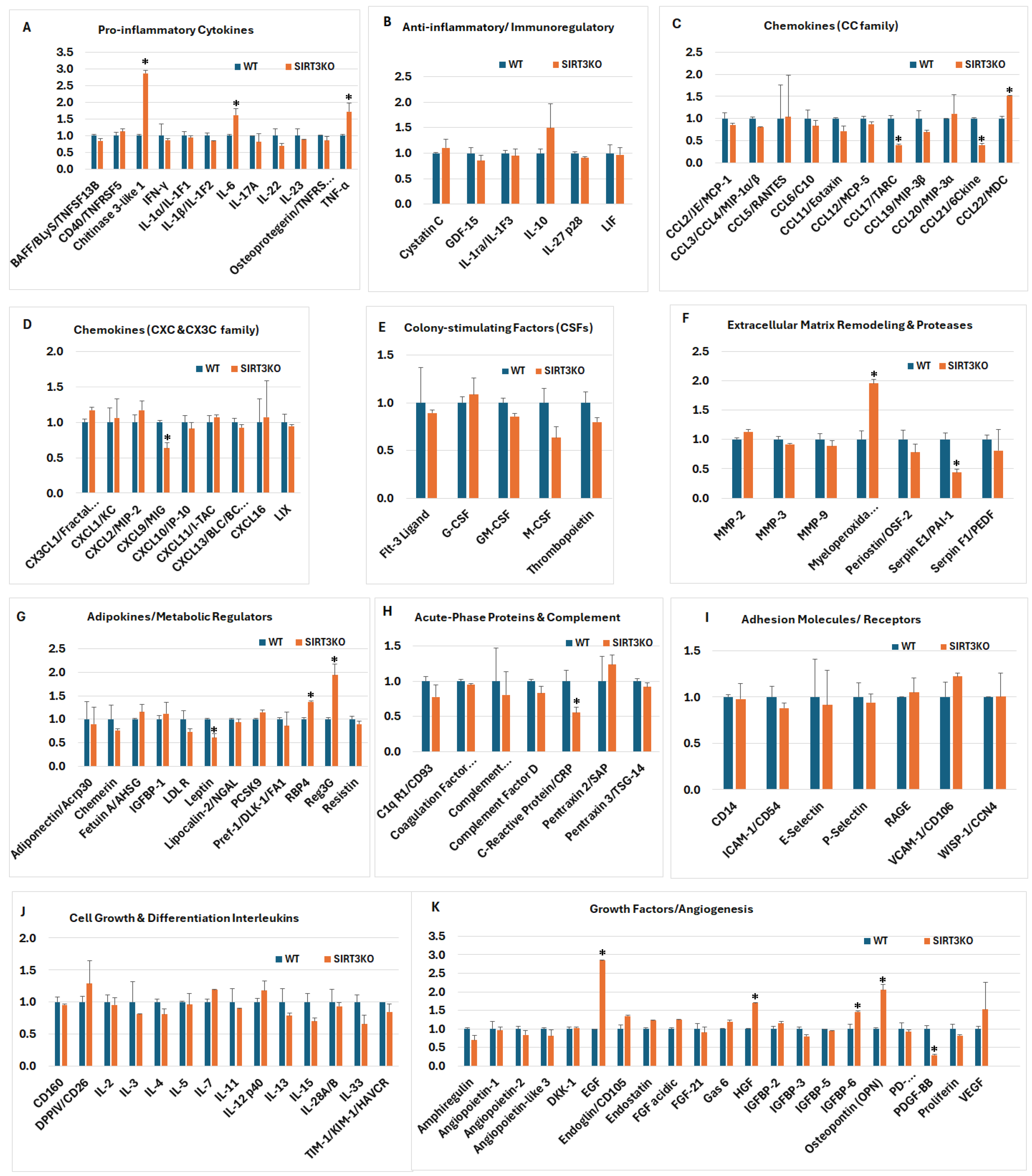 3.4. SIRT3 Deletion Alters Chemokine Expression in Brain Tissue