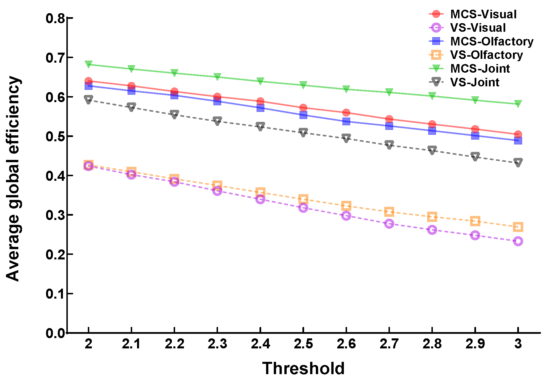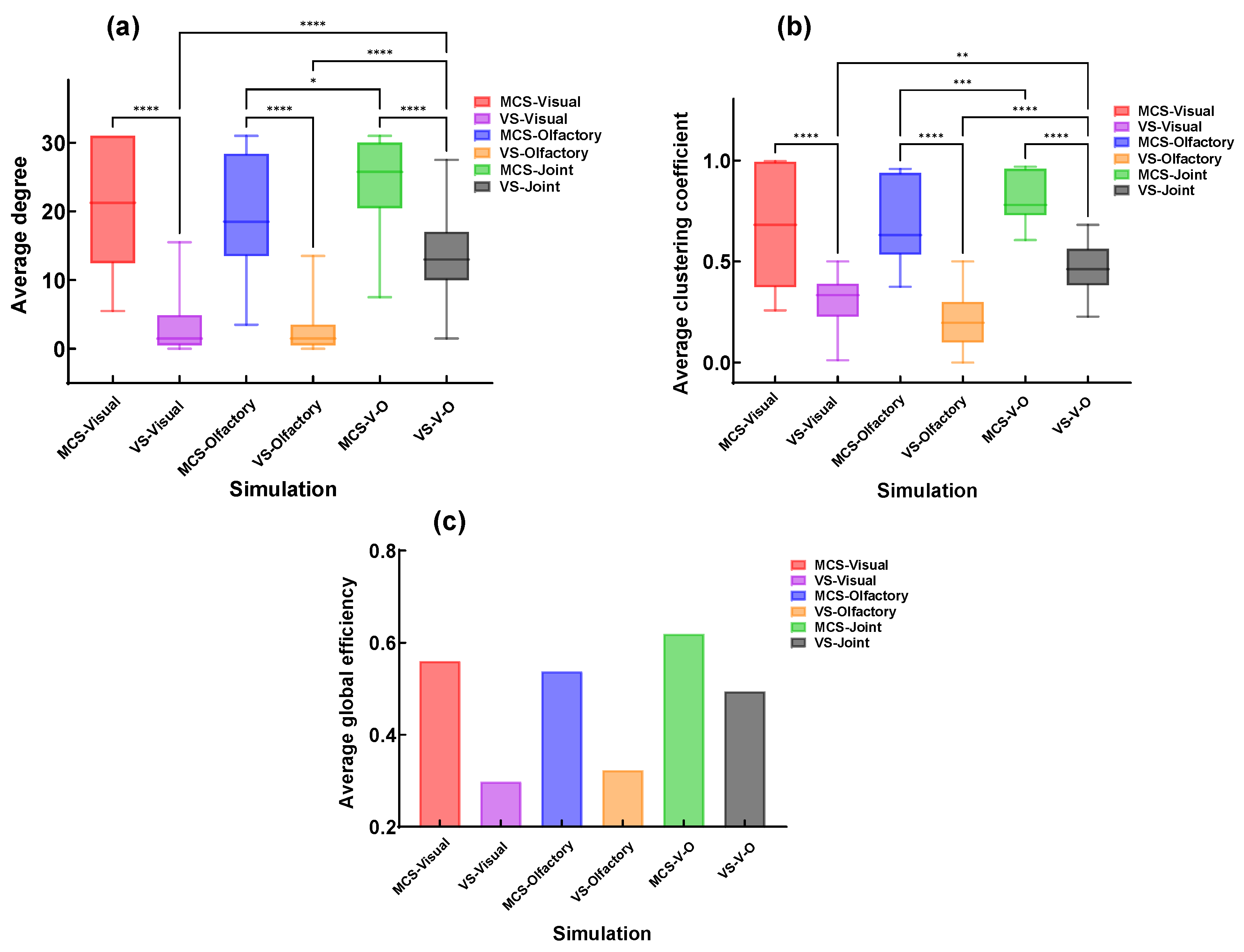 - Visual–olfactory stimulation not only activates connections in brain regions corresponding to single-modality stimulation, but may also enhance the exchange of information between brain regions that are not directly stimulated and other brain regions.