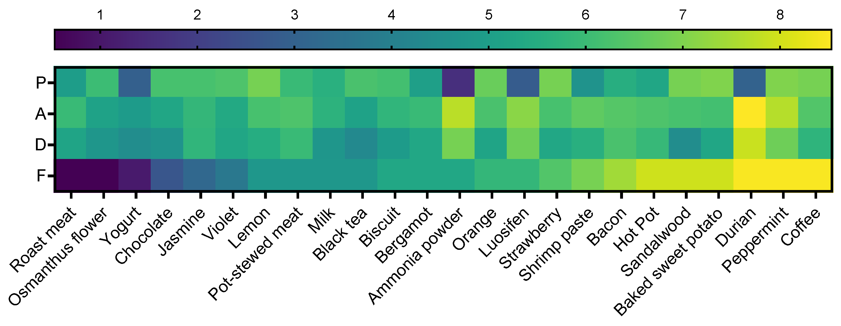 | Visual | Olfactory | V-O | V-O vs. Visual | V-O vs. Olfactory | ||||