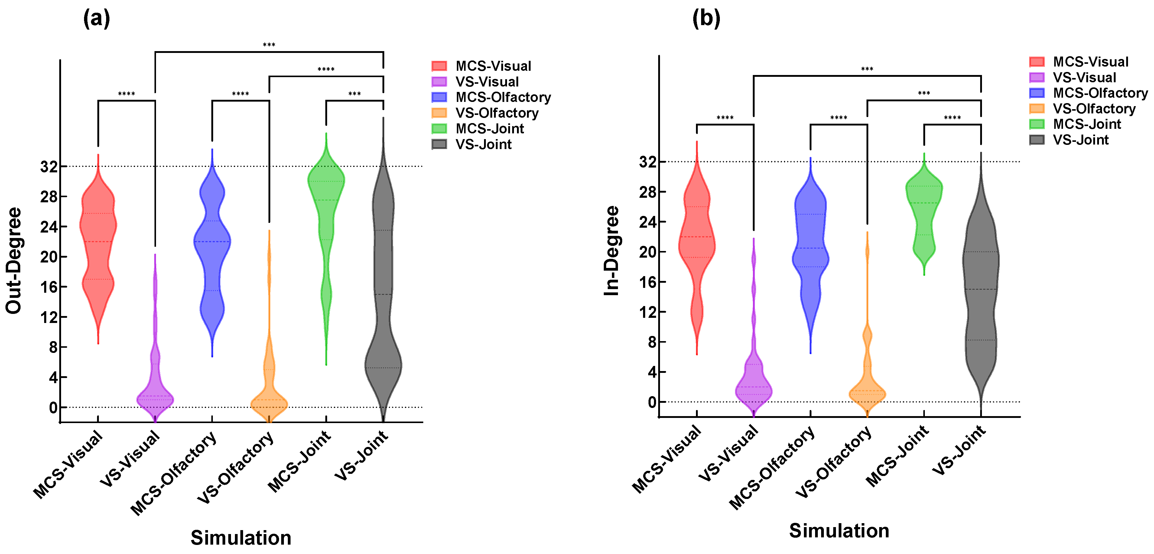 3.2. Topological Properties of Patients Under Different Sensory Stimulations