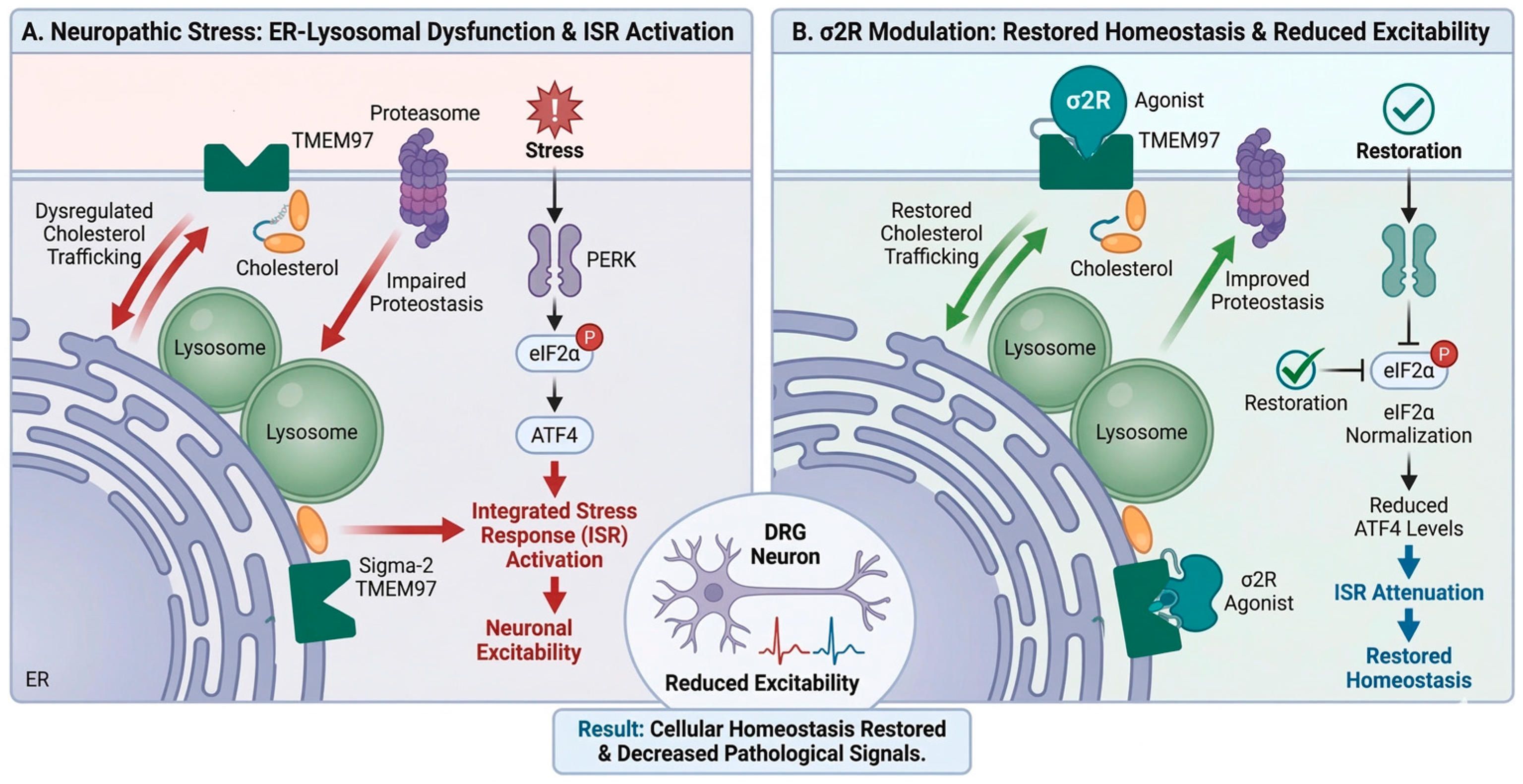 - Sigma-2 receptor/TMEM97 interaction restores proteostatic balance and reduces neuronal vulnerability driven by the integrated stress response (ISR).