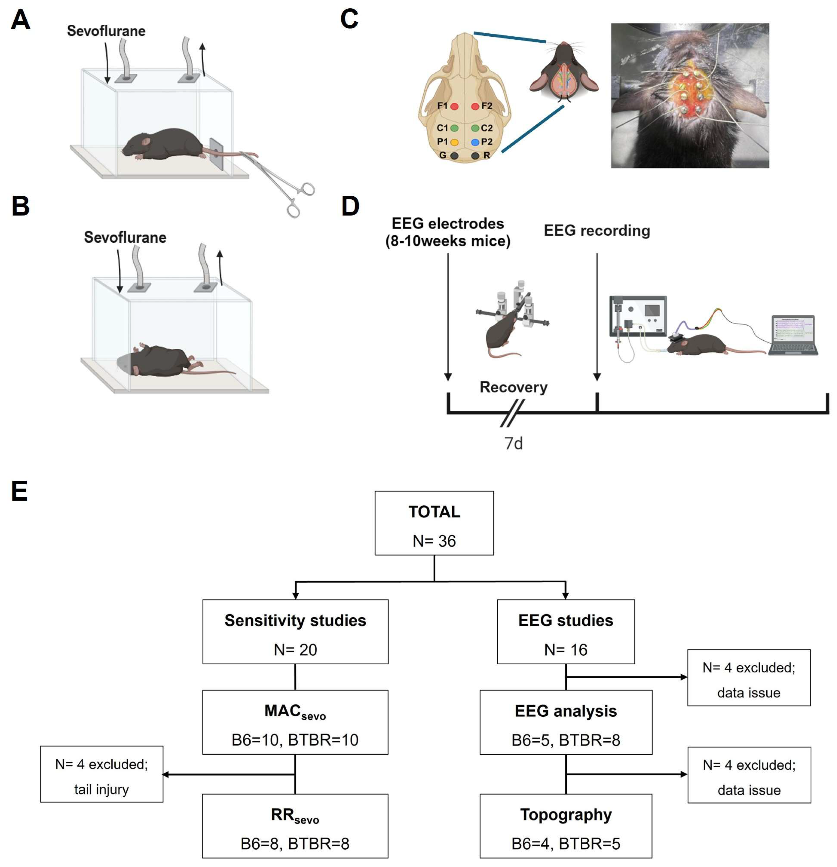 - Wang, D.; Guo, Q.; Liu, D.; Kong, X.-X.; Xu, Z.; Zhou, Y.; Su, Y.; Dai, F.; Ding, H.-L.; Cao, J.-L. Association Between Burst-Suppression Latency and Burst-Suppression Ratio Under Isoflurane or Adjuvant Drugs with Isoflurane Anesthesia in Mice. Front. Pharmacol. 2021, 12, 740012. [Google Scholar] [CrossRef]