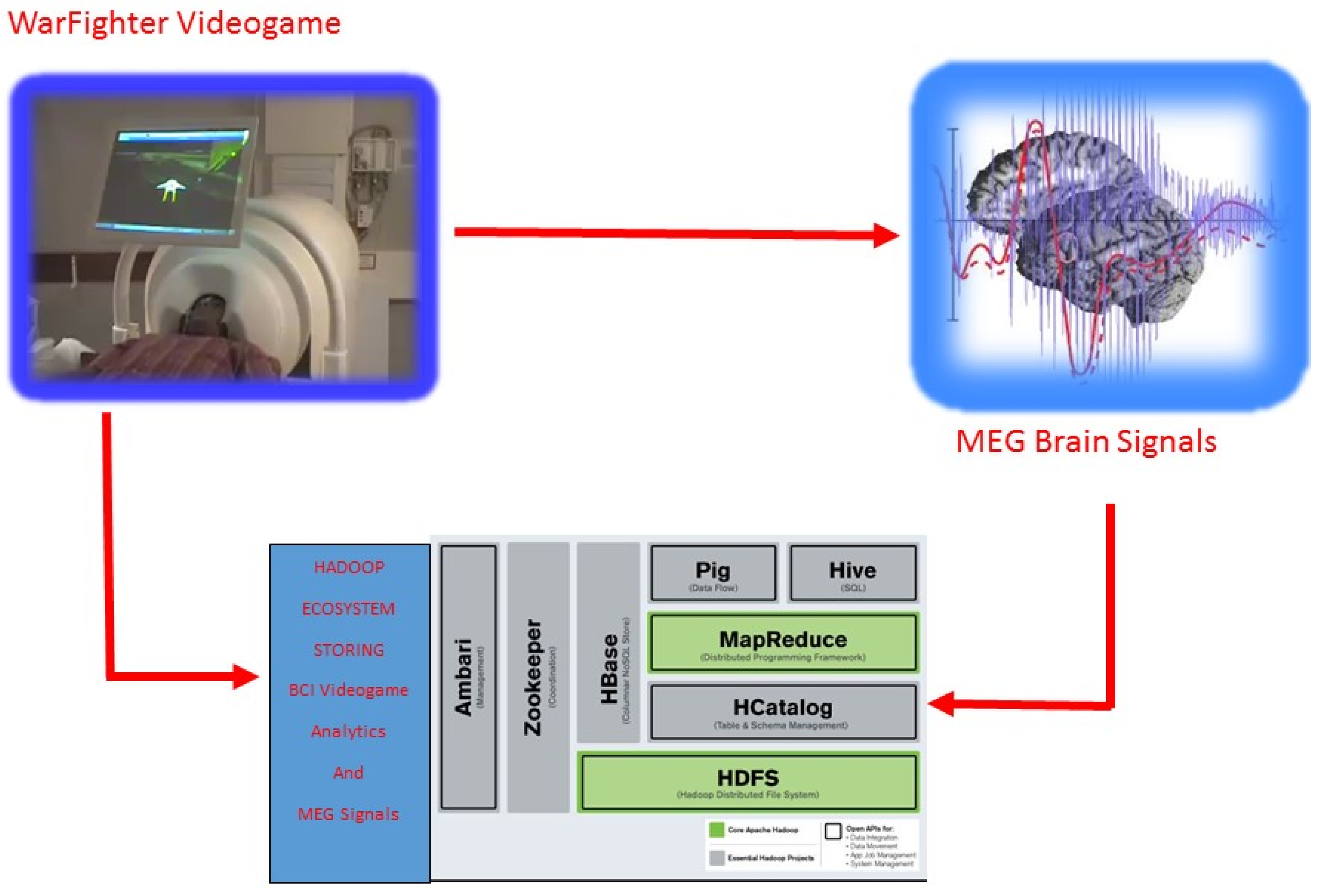 By extracting useful and relevant knowledge from massive information becomes and an essential technique. The MEG BCI paper proposes and utilized the Hadoop Ecosystem based on its massive data management and analysis solutions to catalog better performance on subject’s brainwave data and flight simulator videogame analytics. Additionally, the Hadoop Ecosystem presented data analysis methods based on Pig, HBase and Zookeeper, MapReduce, and HDFS to facilitate as a data warehouse.