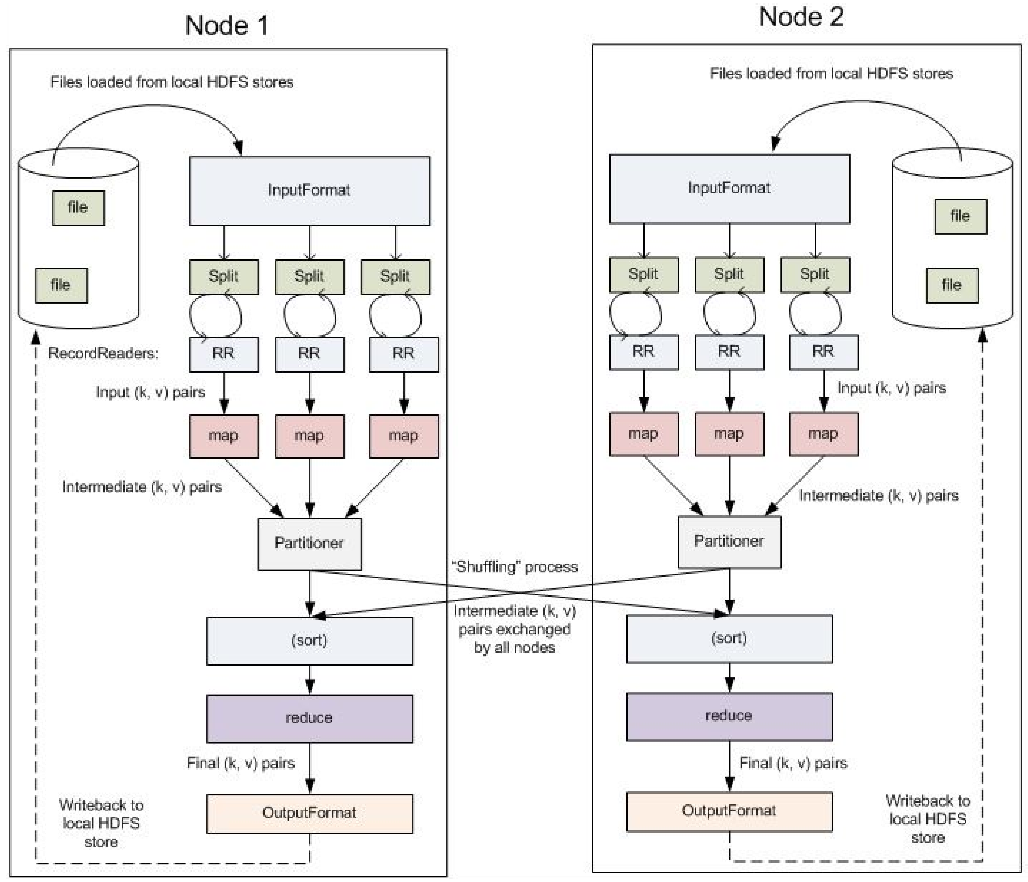 - MapReduce is a computational paradigm for parallel processing using two sequences of execution. First the map phase is a set of key-value pairs and the necessary function is executed over the key-value pairs to produce another interposed key-value pairs. The last application is the reduce phase where the interposed key-value pairs are aggregated by a key and the values are combined together to a final reduction output (Figure 6). In Hadoop, files are split using an input format. An input split is a byte-oriented view of a chunk of the file to be loaded by a map task. Using MapReduce for medical and sensory imaging is becoming a tool of choice, particularly because medical imaging is multi-dimensional data which MapReduce can logically split the data into records and input splits correctly [30,31].
