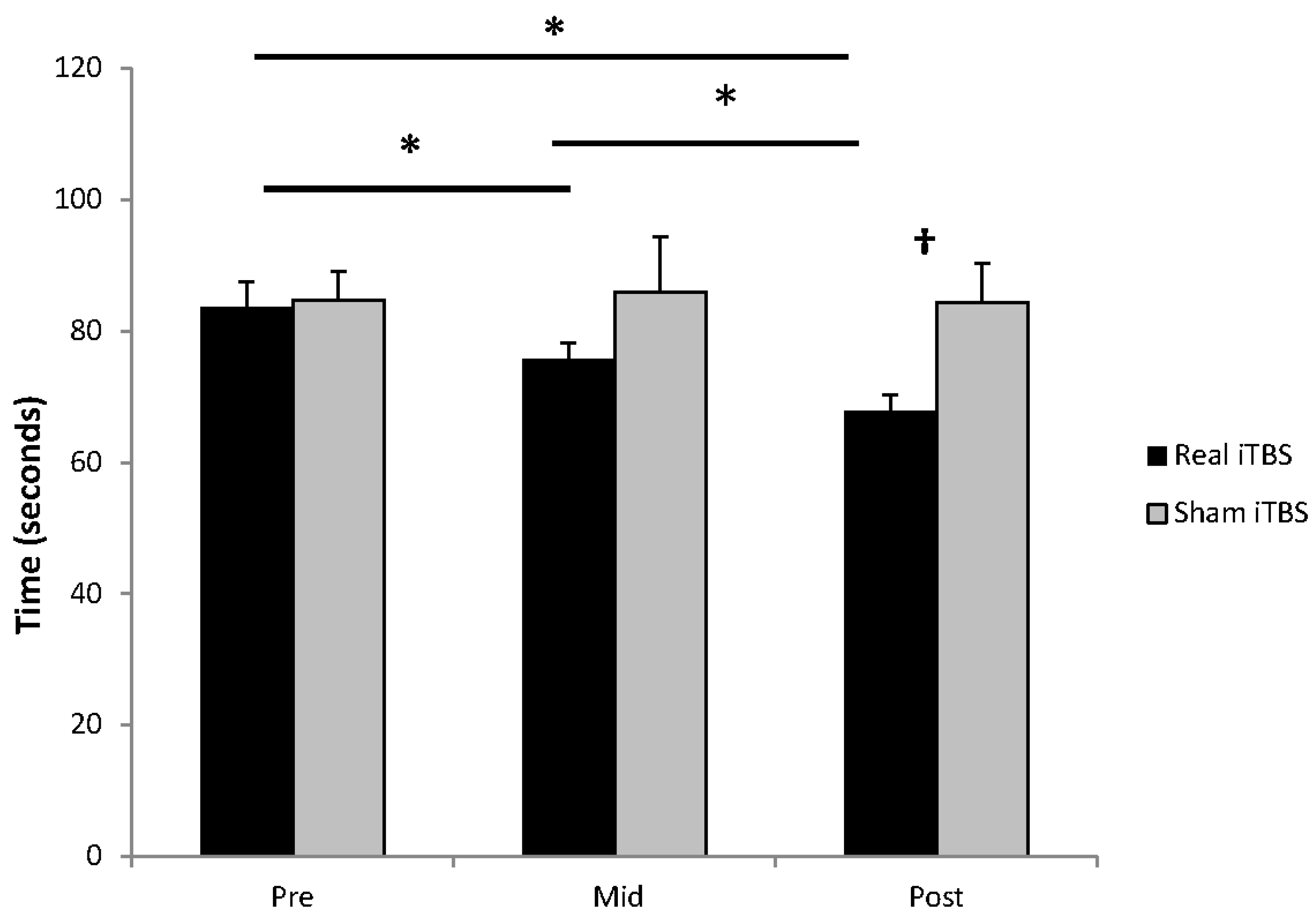 | Sham iTBS | 1.53 ± 0.21 | 1.62 ± 0.23 | 1.66 ± 0.28 | 1.93 ± 0.42 | 1.84 ± 0.27 | 2.09 ± 0.44 |