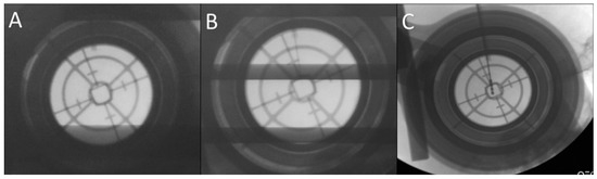 Fluoroscopic confirmation of the target approach. (A) Confirmation of the position of the stereotactic cannula; (B) the microelectrode is advanced to the target under fluoroscopic guidance; (C) the final position of the deep brain stimulation electrode confirmed.
