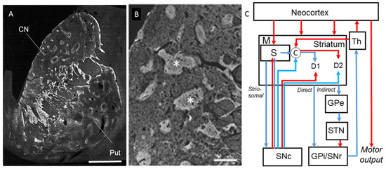 - Crittenden, J.R.; Graybiel, A.M. Basal ganglia disorders associated with imbalances in the striatal striosome and matrix compartments. Front. Neuroanat. 2011, 5, 59. [Google Scholar] [CrossRef] [PubMed]