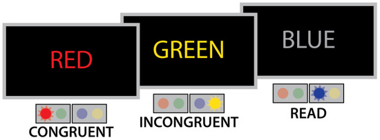 - MacLeod, C.M.; MacDonald, P.A. Interdimensional interference in the Stroop effect: Uncovering the cognitive and neural anatomy of attention. Trends Cogn. Sci. 2000, 4, 383–391. [Google Scholar] [CrossRef]