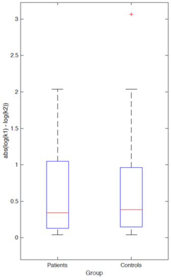 One potential problem with such an analysis approach is that it merely tests for effects of consistent directionality between groups. We therefore explored the possibility that DBS might exacerbate absolute differences in model parameters, regardless of the directionality of the effects. Figure 6 therefore plots for both groups using the Maximum Likelihood parameters. The boxplots again highlight essentially complete overlap in the parameter distributions, which argues against the idea that DBS might increase k-values in some of the patients and decrease them in others, since such an effect would increase absolute parameter differences between sessions in patients with SUD vs. healthy controls.