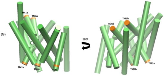 Figure 6A). This was complemented by the movements seen in the extracellular TM6b-TM9 and TM3-TM1b segments (