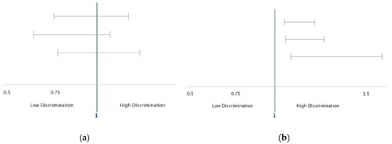 Association between perceived discrimination and depression in low and high SES groups. (a) Low SES; (b) High SES.