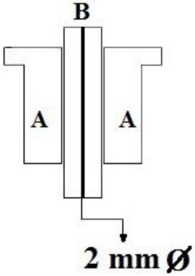 - A system of two fiducials visible to X-rays, which were used to align the two STN target points under intraoperative X-ray control. Each fiducial was a flat ring of radiopaque metal with an external diameter of 2.5 cm (Figure 3 and Figure 4). It was mounted on a plastic ring support provided with a central hole of the same size as the probe employed to determine the horizontal entry point line (Figure 3 and Figure 4).