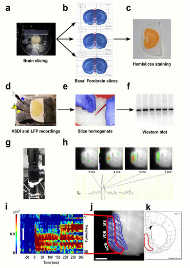 - Brai, E.; Cogoni, A.; Greenfield, S.A. An Alternative Approach to Study Primary Events in Neurodegeneration Using Ex Vivo Rat Brain Slices Video Link. J. Vis. Exp. 2018, 134. [Google Scholar] [CrossRef]