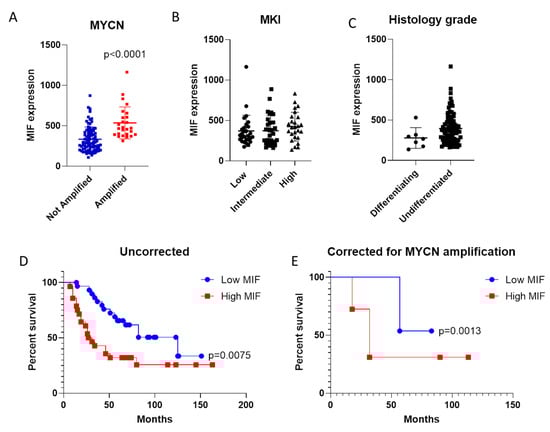 3.2. Evaluation of MIF as Negative Prognostic Factor in NB