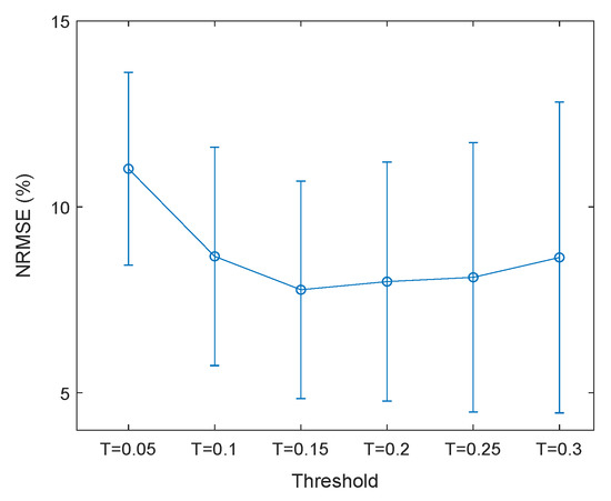 Figure 4 shows the mean ± std of NRMSE between pure and filtered EEG signals per different values of T for CHB-MIT database. As observed below, the T value of 0.15, has the lowest NRMSE.
