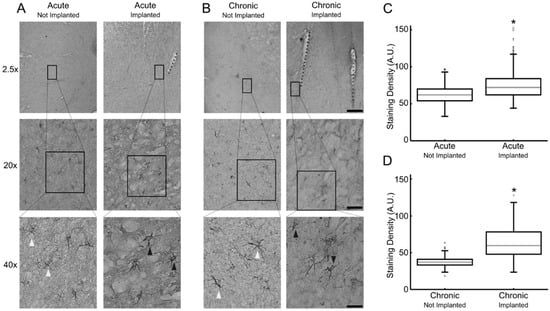 - Potter-Baker, K.A.; Ravikumar, M.; Burke, A.A.; Meador, W.D.; Householder, K.T.; Buck, A.C.; Sunil, S.; Stewart, W.G.; Anna, J.P.; Tomaszewski, W.H.; et al. A comparison of neuroinflammation to implanted microelectrodes in rat and mouse models. Biomaterials 2014, 35, 5637–5646. [Google Scholar] [CrossRef]