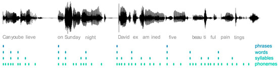 Acoustic waveform with its segmentation into phrases, words, syllables, and phonemes. Figure reproduced from [48].