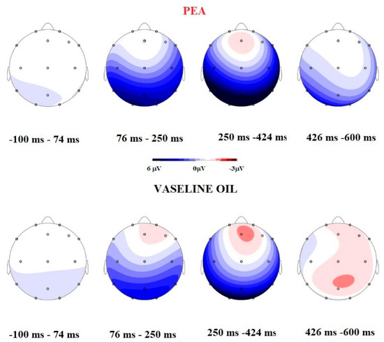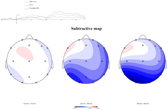 Moreover, the OERP components and Maps obtained (Figure 3), through data comparison (i.e., difference waves between PEA administration and Vaseline Oil administration), highlight greater negativity with a left lateralization.