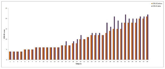 Coma recovery scale revised (CRS-R) score changes in group analysis.