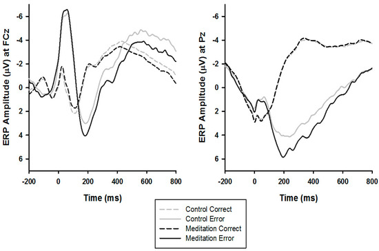 In addition to the abundance of basic research on the ERN and Pe, a wide literature base has implicated error monitoring in various regulatory and functional domains such as stress regulation [40,41], impulse control [42,43], attention regulation [44], and academic performance [45,46,47]. Despite the central role of error monitoring in maintaining healthy functioning, surprisingly few studies have examined the intersection between mindfulness and error monitoring.