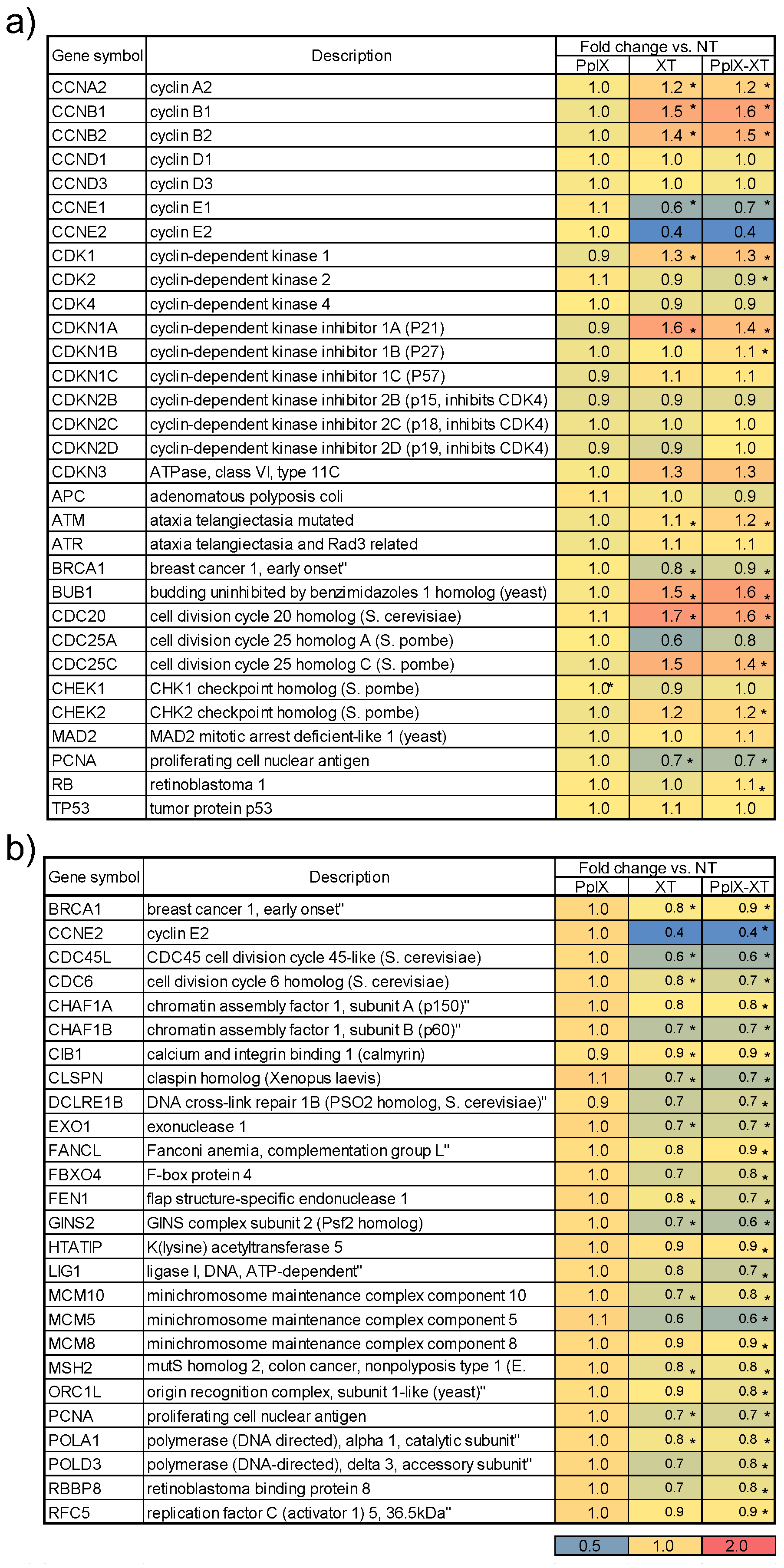 | GO:0006260 | DNA replication | 15 | 19 | 7.5 × 10−9 | 1.8 × 10−11 | down | down | ||||