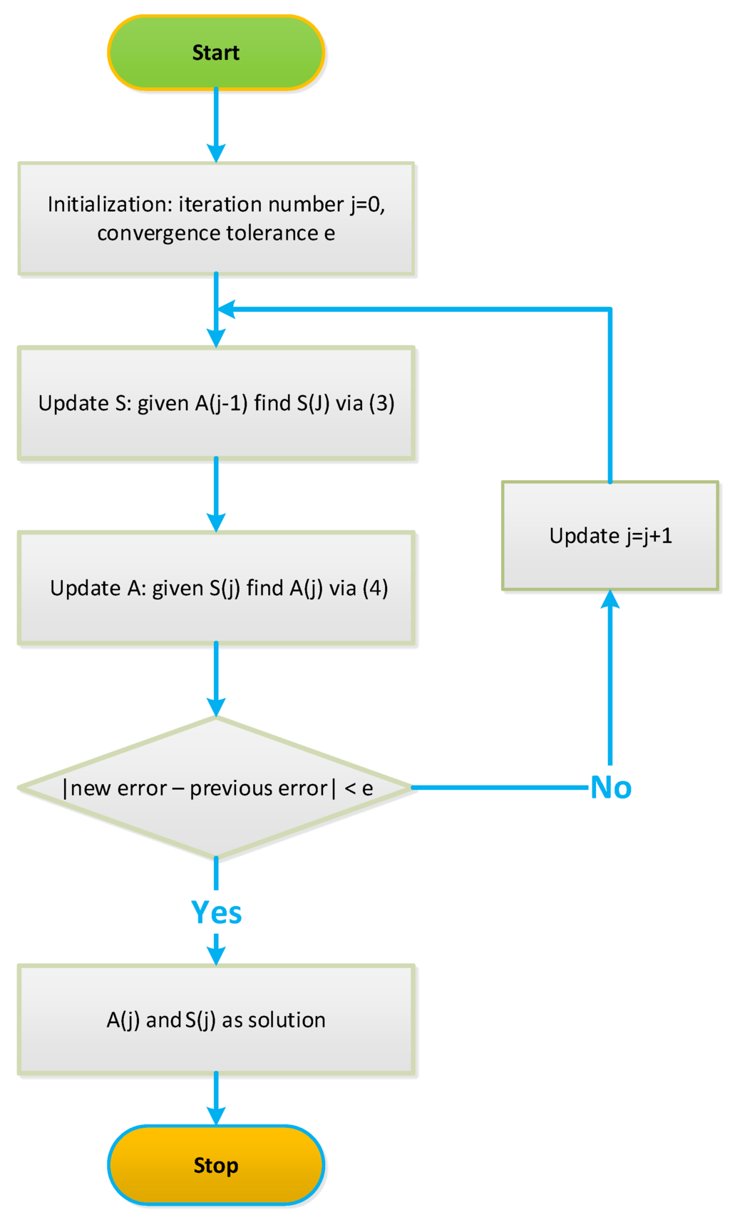 where denotes the Frobenius norm. NCA employs an alternate least-squares (ALS) approach to iteratively update and . At iteration j, given , i.e., the value of at iteration , the estimate of is obtained by solving the following least-squares (LS) problem: