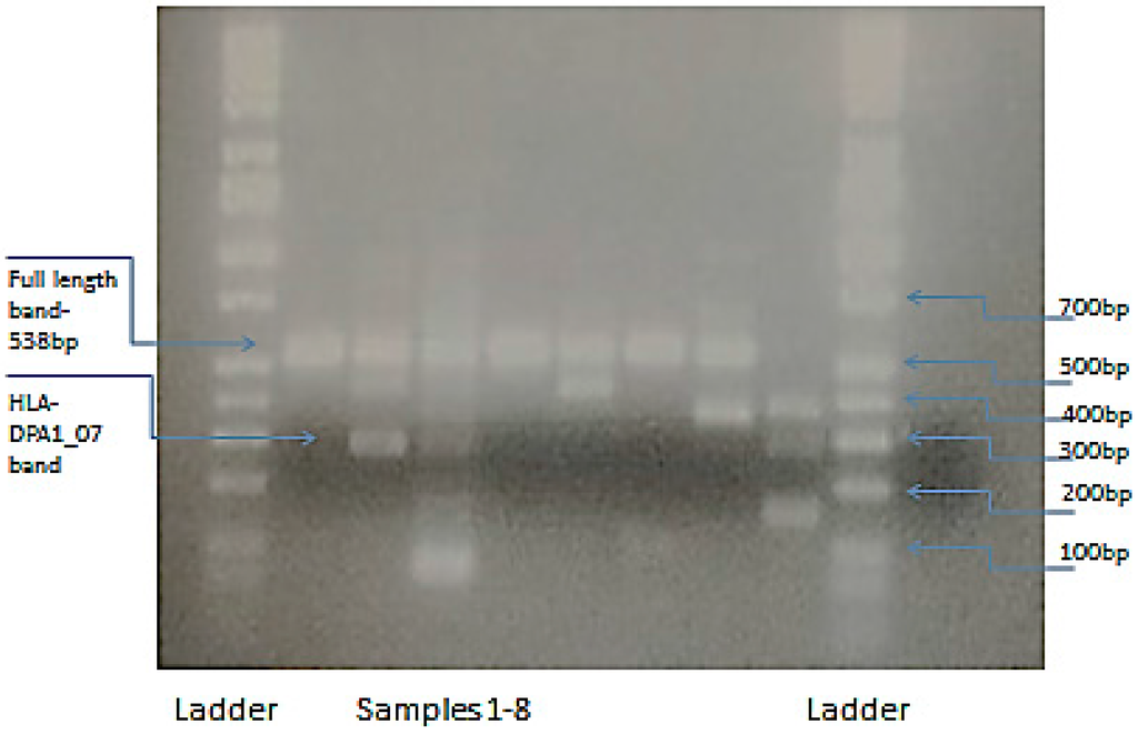 The gel images showed the multiple bands of HLA-DPA1 exon 2–4 from anterior cingulate brain samples. Full-length bands 538 bp and multiple bands of HLA-DPA1 exon 2–4 alternative splicing.