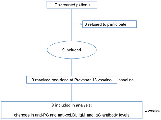 - Grievink, H.W.; Gal, P.; Kozma, M.O.; Klaassen, E.S.; Kuiper, J.; Burggraaf, J.; Binder, C.J.; Moerland, M. The Effect of a 13-Valent Conjugate Pneumococcal Vaccine on Circulating Antibodies against Oxidized LDL and Phosphorylcholine in Man, A Randomized Placebo-Controlled Clinical Trial. Biology 2020, 9, 345. [Google Scholar] [CrossRef] [PubMed]