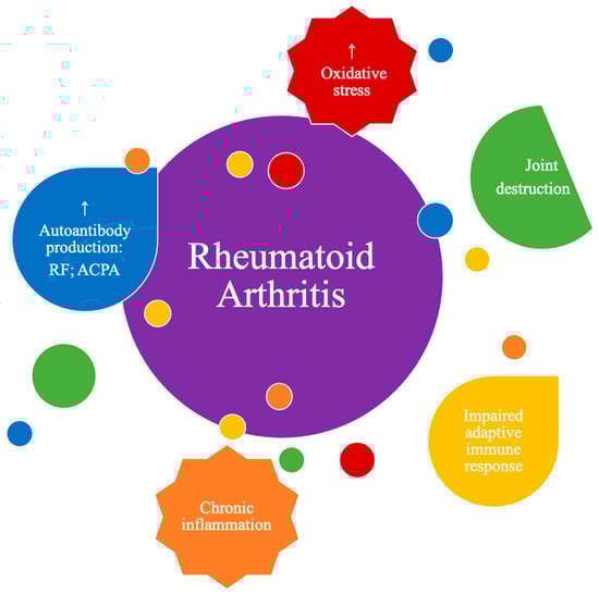 - Quinonez-Flores, C.M.; Gonzalez-Chavez, S.A.; Del Rio Najera, D.; Pacheco-Tena, C. Oxidative stress relevance in the pathogenesis of the rheumatoid arthritis: A systematic review. Biomed Res. Int. 2016, 2016. [Google Scholar] [CrossRef] [PubMed]