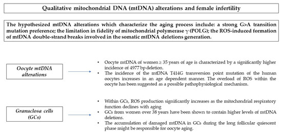 The exact mechanism underlying the ovarian aging process is not fully elucidated. However, it is becoming increasingly evident that mitochondrial genome alterations can play a relevant role [4].
