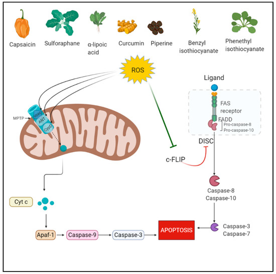 Reactive Oxygen Species (ROS)-mediated apoptotic action of phytochemicals. Figure created with BioRender.com.