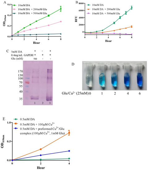 3.2. Glutamate Protects against Copper-Facilitated Dopamine Oxidation