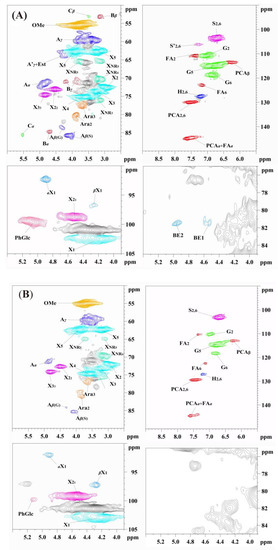 2D-HSQC NMR spectra of LCC-WS-A (A) and LCC-WS-B (B).