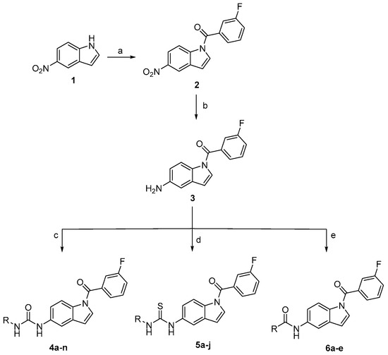 2.6. General Procedure of Amide Derivatives (6a–e)