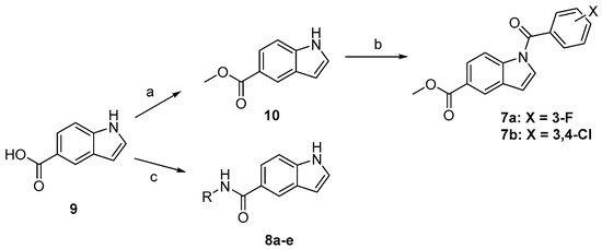 2.9. General Procedure of the Free NH Indole Derivatives 8a–e