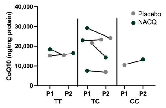| CoQ10 | NACQ | 7090 ± 2898 a | 7653 ± 3632 a | |