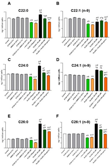 - Zarrouk, A.; Vejux, A.; Nury, T.; El Hajj, H.I.; Haddad, M.; Cherkaoui-Malki, M.; Rietdinger, J.-M.; Hammami, M.; Lizard, G. Induction of mitochondrial changes associated with oxidative stress on very long chain fatty acids (C22: 0, C24: 0, or C26: 0)-treated human neuronal cells (SK-NB-E). Oxidative Med. Cell Longev. 2012, 2012, 623257. [Google Scholar] [CrossRef]