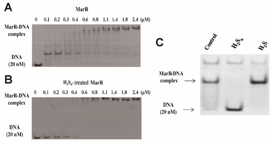 3.1. MarR Sensed Sulfane Sulfur and Decreased Its DNA Binding Affinity