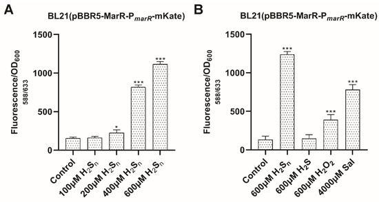 3.2. MarR Responded to H2Sn in An E. Coli Reporter System