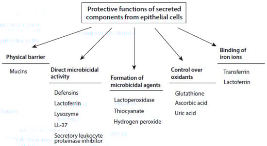 Different immune-protecting agents are secreted by the epithelial cells of mucous surfaces (Figure 1). These agents are directed to maintain homeostatic conditions in the surface epithelia and adjacent luminal space.