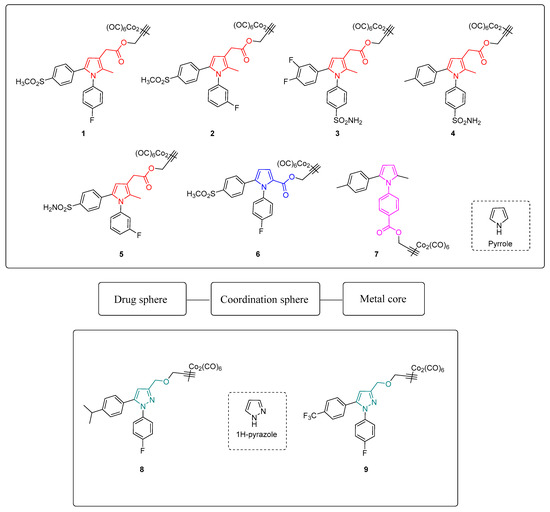 Compounds 1-9 were easily synthesized in good yields by reacting the terminal alkyne of propargylic intermediates and dicobalt(0)carbonyl octacarbonyl in tetrahydrofuran (THF). Detailed synthetic procedures are reported in the Supporting Information.