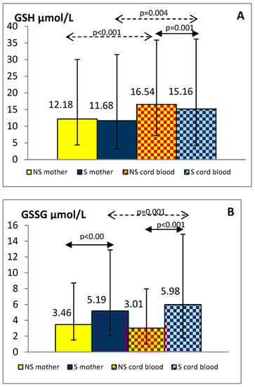 Chełchowska, M.; Gajewska, J.; Ambroszkiewicz, J.; Mazur, J.; Ołtarzewski, M.; Maciejewski, T.M. Influence of Oxidative Stress Generated by Smoking during Pregnancy on Glutathione Status in Mother-Newborn Pairs. Antioxidants 2021, 10, 1866. https://doi.org/10.3390/antiox10121866