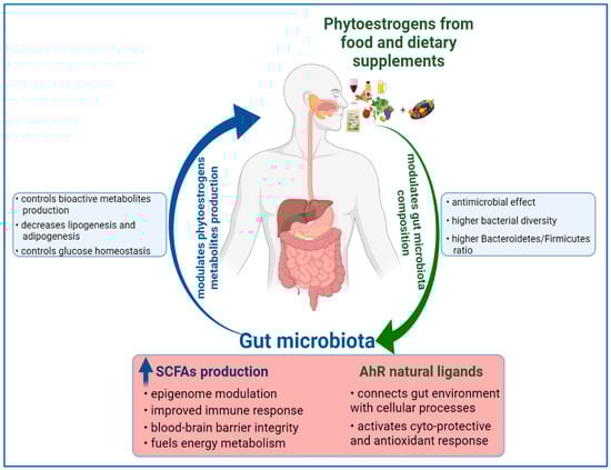 On the one hand, the composition of gut microbiota can influence the metabolism of phytoestrogens; on the other hand, phytoestrogens and their metabolites can modulate and reshape the gut microbial composition [13]. Understanding their reciprocal influence, and by deciphering the molecular basis of phytoestrogens and microbiome interaction, it can be the key to elucidate their influence on human health.