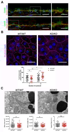 3.1. KD/KO RPE Displays More Polynucleated Cells and Smaller Mitochondria